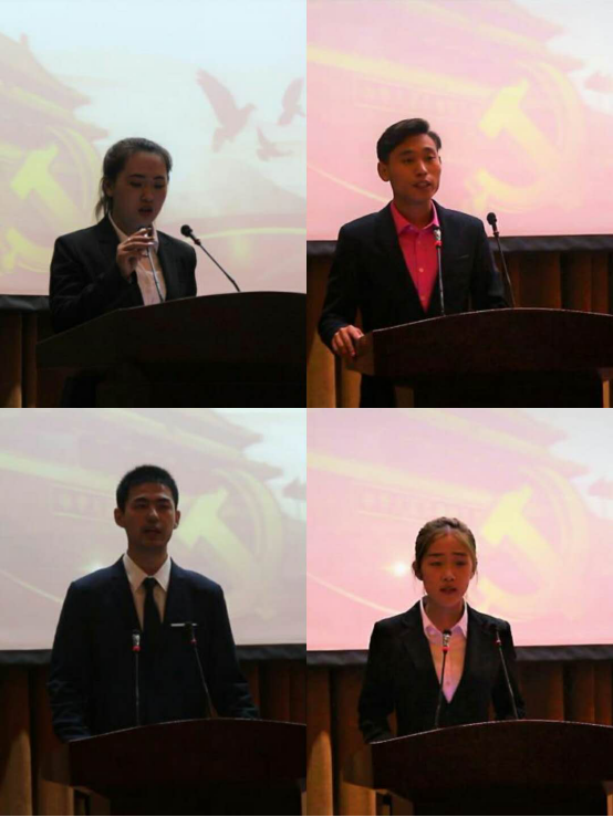 团日活动以退役士兵带来的《渴望光荣》拉开帷幕。特邀思想政治理论指导老师孙达为金融学子讲授习近平总书记两次讲话的精神内涵,强调当代青年大学生肩上的责任和面对挑战,祖国的明天需要广大青年努力奋斗。岳凤杰书记为优秀学生典型颁奖之后,金融学院的四位青年学生围绕自己的学习体会进行宣讲交流。王雪田以马克思一生不变的志向》为题回顾了马克思的一生,“在科学上没有平坦的大道,只有不畏劳苦沿着陡峭山路攀登的人,才有希望达到光辉的顶点。” 马克思用实际行动指引着一代代人。刘晨雨围绕《新时代共前行》阐述了处于新时代的青年应该做什么、能做什么,青年人是国家的希望,青年人应该坚信幸福是奋斗出来的,满怀热血和激情去奋斗。张谭同学通过分享《习近平的七年知青岁月》带领金融学子回顾习近平总书记的“青春故事”,帮助青年人把握习近平总书记治国理政的思想根源和实践起点。查燕同学围绕知行合一发出倡议,新时代的青年大学生应该以社会主义建设者和接班人的使命担当,为全面建成小康社会、全面建设社会主义现代化强国而努力奋斗。团日活动在《我爱你中国》的歌曲合唱中落幕。